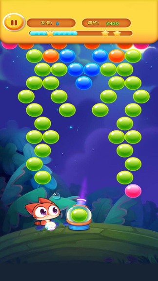 泡泡龍消消消最新版在經(jīng)典泡泡龍基礎(chǔ)上全新演繹的一款趣味消除手游,游戲提供了多個(gè)關(guān)卡,玩家需要一一去挑戰(zhàn)它們??刂婆谂_方向來射擊相同顏色的泡泡即可完成消除,畫面q萌有趣。