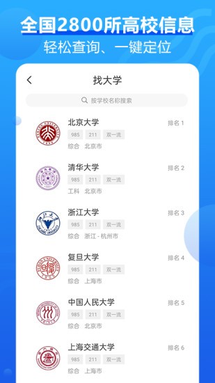 1、會(huì)同步官方考試院招生、錄取數(shù)據(jù),全國(guó)多所大學(xué)盡在其中。