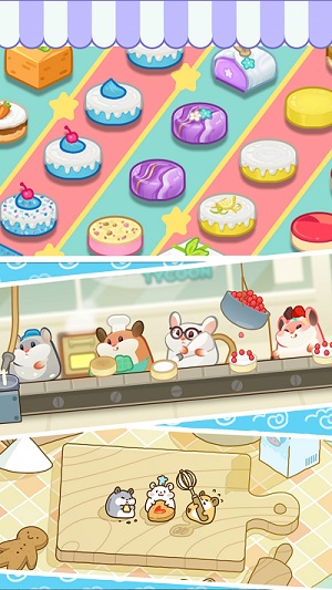 各種美味可口,顏值巔峰的蛋糕將會被擺放在桌子上,令人垂涎欲滴的味道散發(fā)開來,將會帶來軟糯香甜的口感,在這個(gè)倉鼠的游戲世界中,玩家可以慢慢的經(jīng)營自己的餐廳,制作更多不同口味的蛋糕。