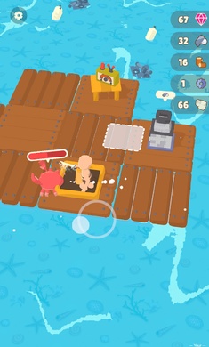 -踢走討厭的螃蟹和鯊魚(yú),以建造你的木筏,這樣可以更加快速的進(jìn)行建設(shè),不被破壞。