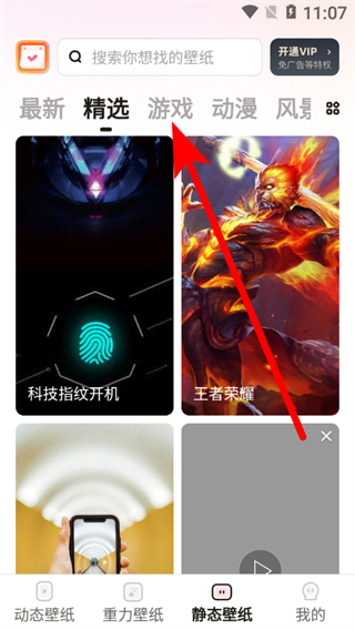 2、在壁紙分類頁面,點擊游戲分類,進入游戲壁紙列表頁面。