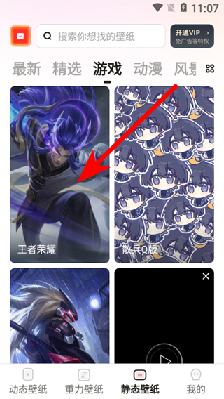 3、在游戲壁紙列表頁面,點擊想要設置的壁紙,如王者榮耀壁紙,進入壁紙詳情頁面。