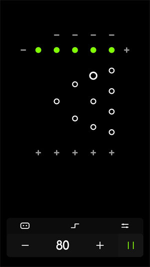 - 自由設(shè)置于開始和結(jié)束的BPM,自動(dòng)運(yùn)行節(jié)拍器進(jìn)行練習(xí),逐步提高速度,直到結(jié)束。