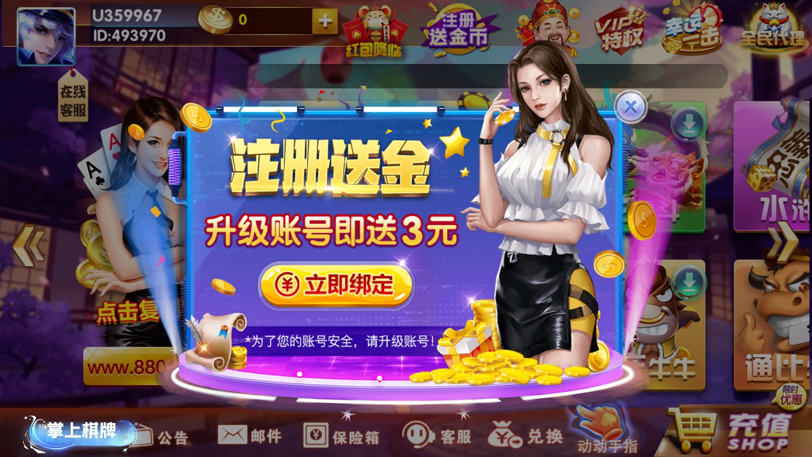 4、完成棋牌任務(wù)獲得紅包金幣免費(fèi)拿,各種全新的玩法是層出不窮的,支持了快捷充值,兌換遊戲的籌碼,隨時(shí)都能選擇自己喜歡的棋牌競(jìng)技。