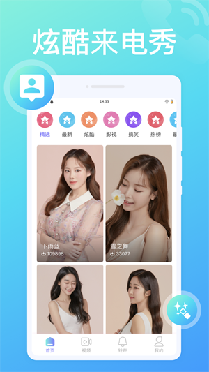 - 為用戶(hù)帶來(lái)了很多個(gè)性有趣的視頻來(lái)電秀,都是可以免費(fèi)的直接下載使用的資源;
