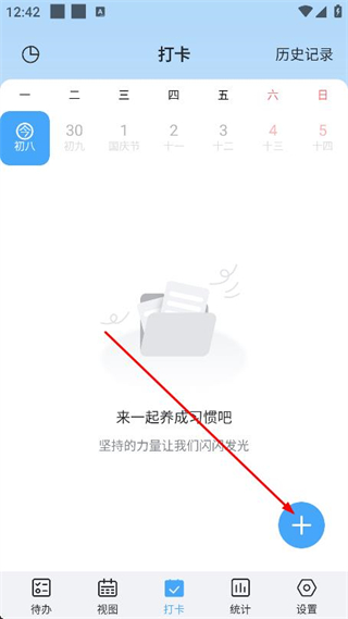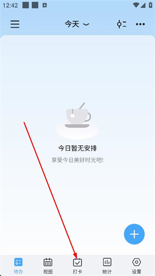2、在打卡頁(yè)面,找到并點(diǎn)擊右下角的藍(lán)色+按鈕。