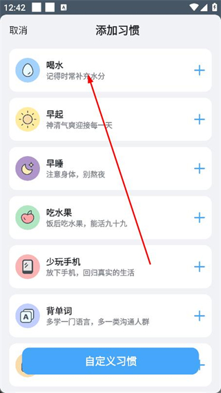 3、進(jìn)入添加習(xí)慣頁(yè)面,選擇一個(gè)想要添加的習(xí)慣。