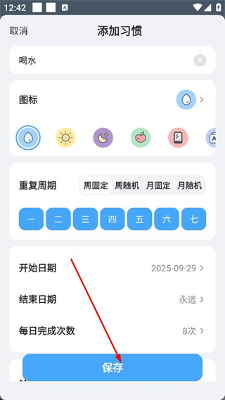 4、根據(jù)需求設(shè)置習(xí)慣,點(diǎn)擊保存,即可完成習(xí)慣添加。