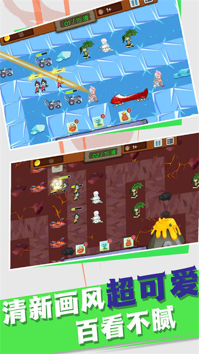 1、風(fēng)格獨(dú)特的植物娘和僵尸,玩家可以放置和攻擊;