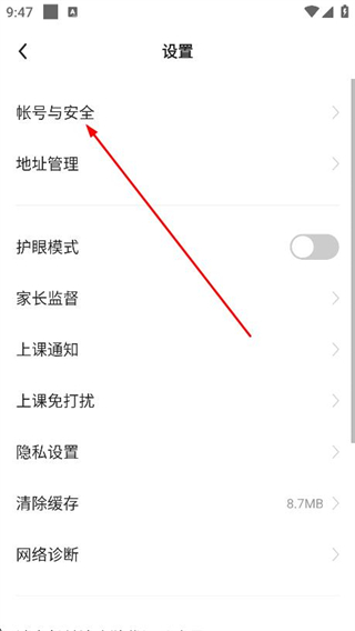 3、進(jìn)入設(shè)置頁(yè)面后,找到并點(diǎn)擊帳號(hào)與安全選項(xiàng)。
