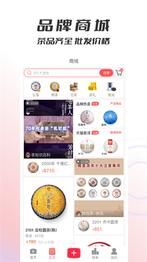 - 包含的茶葉商品類型也是非常多的,各種生茶、熟茶、沱茶、散茶、茶禮等,滿足了所有用戶的需求。