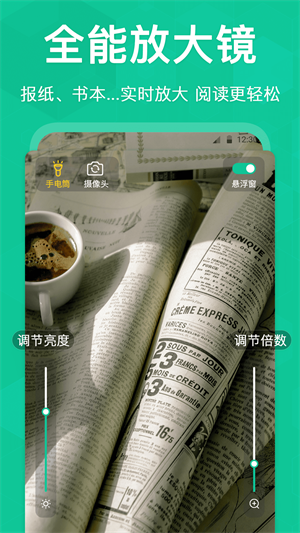 1、放大鏡:多功能方便實(shí)用的放大鏡APP。打開放大鏡,它會(huì)自動(dòng)對(duì)焦文字,并可進(jìn)一步放大/縮小文字以及圖片,支持多種場(chǎng)景放大,相機(jī)放大、網(wǎng)頁(yè)放大、圖片放大、文字放大等;