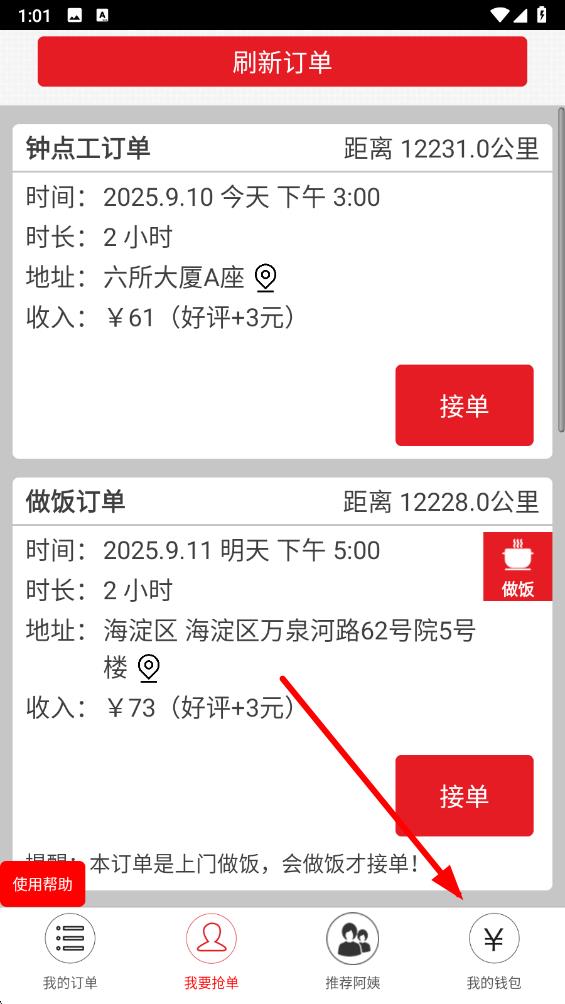 1、打開超級阿姨端app,點擊底部導航欄中的我的錢包,進入相關頁面。