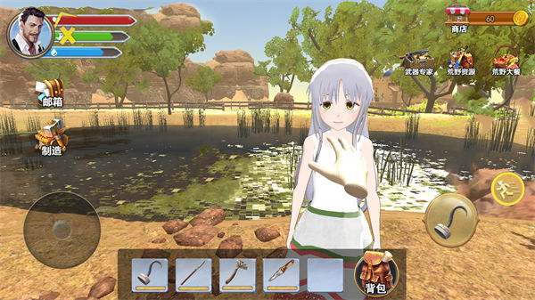 2、想方設(shè)法收集有用的資源與道具,手工制作各種武器與狩獵工具;