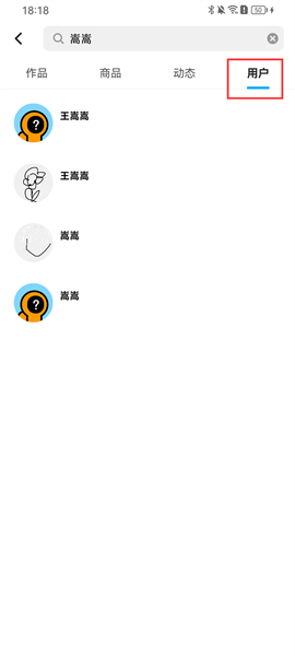 3、接著切換到用戶欄,就會有多個不同的結(jié)果,選擇自己的目標(biāo)好友并點擊;