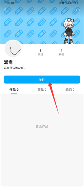 4、點擊他的頭像后就會來到此人的主頁,他的作品動態(tài)等都是在這里查看,點擊關(guān)注,就可以時刻了解關(guān)注好友啦。