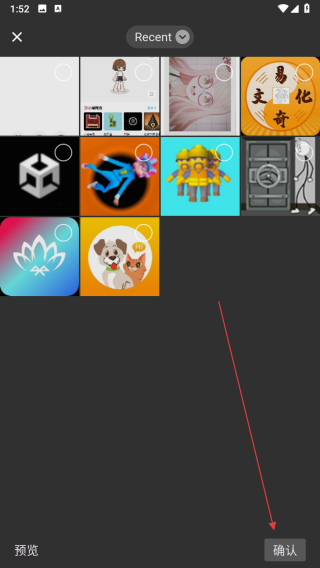 3、在動態(tài)素材選擇頁面,選中要發(fā)布的圖片素材,然后點擊右下角的確認按鈕。