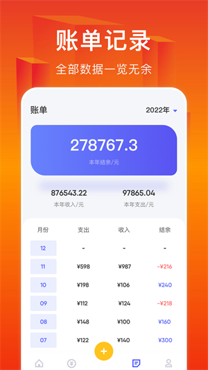 1、極簡(jiǎn)的操作流程,讓您輕松上手,三秒完成記賬,極致體驗(yàn);