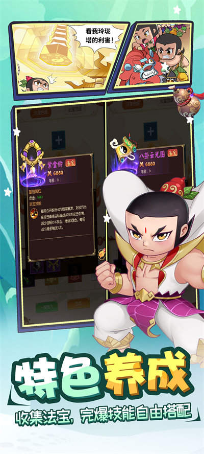 1、有趣的游戲故事背景,玩家可以和葫蘆娃一起戰(zhàn)斗、一起冒險(xiǎn),回味經(jīng)典的動(dòng)漫劇情;
