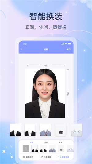 - 證書照片拍攝應(yīng)用,具有多種尺寸和背景顏色的選擇,滿足用戶的不同需求;
