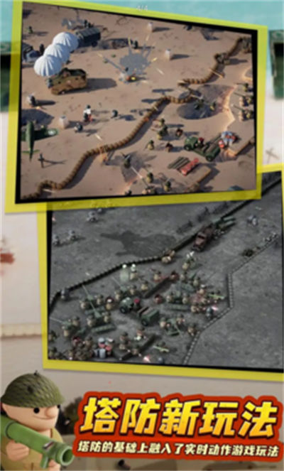 -玩家可以使用降落傘前往不同的戰(zhàn)場并完成任務(wù),每次塔防戰(zhàn)斗將收集更多的經(jīng)驗值和技能;
