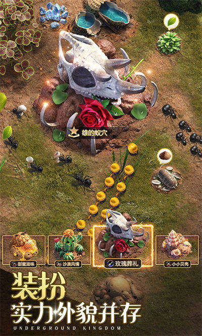 1、超寫實(shí)的螞蟻世界,游戲根據(jù)螞蟻的生活習(xí)性模擬了一個真實(shí)的螞蟻生活場景,游戲情景高度還原現(xiàn)實(shí);