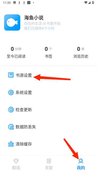 1、通過本站下載海魚小說,打開后,分別選擇我的進入個人中心,然后打開書源設(shè)置;