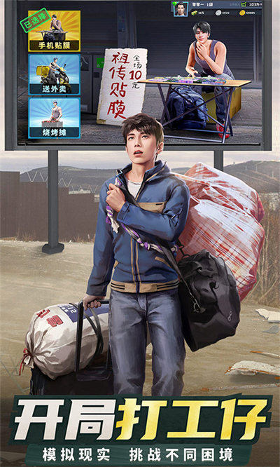 1、打工掙錢升級(jí),玩家在初始時(shí)作為窮小子出場(chǎng),需要攢下一些資金,玩家可以在街邊貼膜,也可以給別人打工,攢下資金就可以朝別的方向發(fā)展;