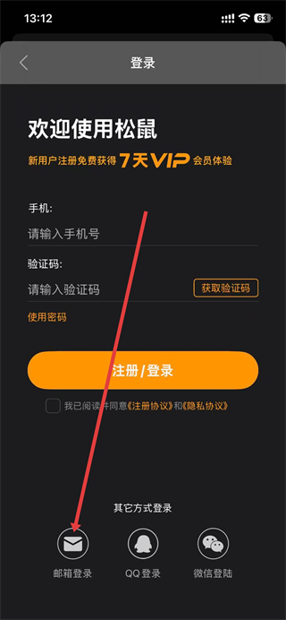 3、進(jìn)入登錄頁(yè)面后,找到并點(diǎn)擊下方郵箱登錄。