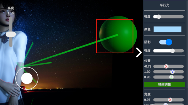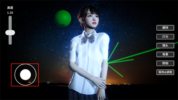 2、玩家通過移動可以看見屏幕的后方有過一個綠色的星球,玩家點擊可以進行光線的調(diào)整;