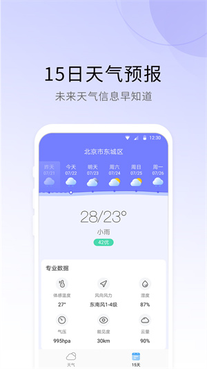 - 該軟件還支持連續(xù)幾天的天氣查詢服務(wù),用戶可以在平臺(tái)上查看未來(lái)15天的天氣預(yù)報(bào)。