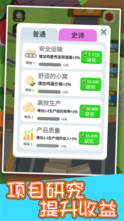 2、擴(kuò)大生產(chǎn)規(guī)模,玩家需要經(jīng)營(yíng)雞蛋工廠,對(duì)工廠進(jìn)行升級(jí),擴(kuò)大規(guī)模,這樣能夠提高雞蛋產(chǎn)量;