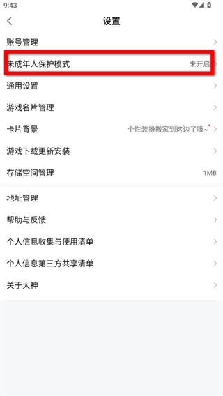 3、在設(shè)置界面,點(diǎn)擊未成年人保護(hù)模式選項(xiàng),進(jìn)入對(duì)應(yīng)設(shè)置頁(yè)面。