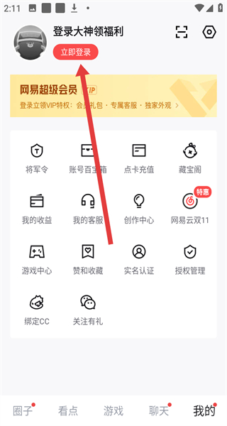 1、在我的主頁(yè)中點(diǎn)擊“立即登錄”,進(jìn)入登錄方式選擇頁(yè)面。
