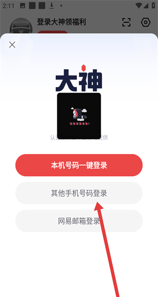 2、登錄方式選擇頁(yè)面點(diǎn)擊“其他手機(jī)號(hào)碼登錄”,進(jìn)入手機(jī)號(hào)登錄頁(yè)面。