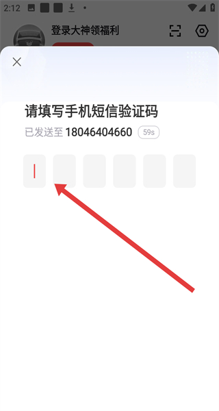 4、在短信驗(yàn)證碼填寫頁(yè)面輸入收到的驗(yàn)證碼,完成賬號(hào)登錄操作。