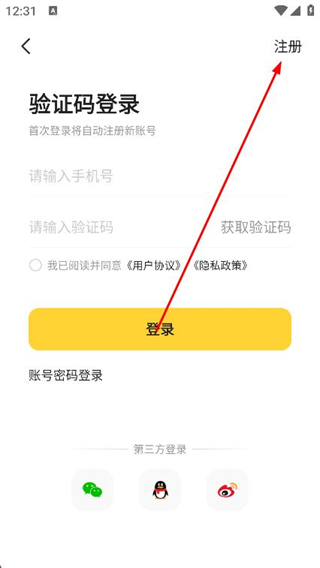 3、進入登錄界面后,找到并點擊右上角的注冊選項。