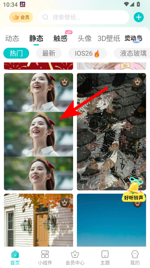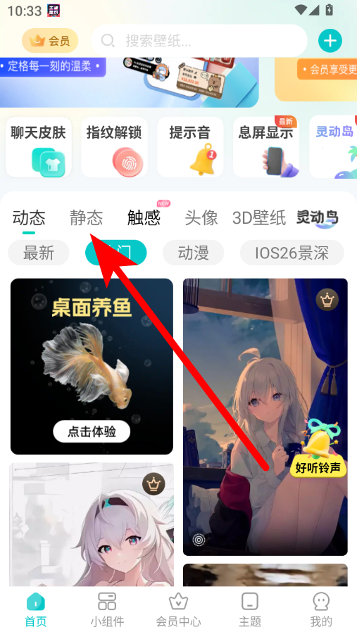 1、在APP首頁,點擊靜態(tài)選項,進入靜態(tài)壁紙界面。