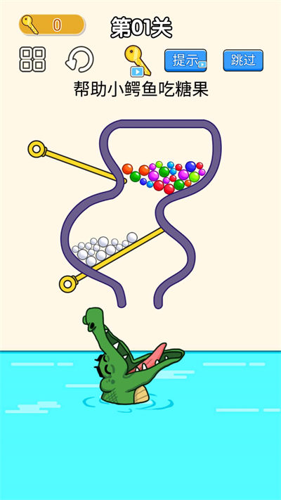 3D模擬饑餓鱷魚游戲是一款鱷魚題材的休閑游戲,這里有一只饑餓的鱷魚,它想吃到懸放在上方的糖果,但是糖果被針擋住了掉不下去,玩家需要抽掉這些針,幫助鱷魚吃到糖果,但要注意不能讓白色的糖果掉下去,因為鱷魚不愛吃白色的糖果,你能成功幫助鱷魚填飽肚子嗎。