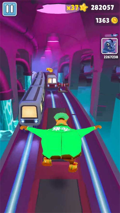 2、收集金幣,游戲中的地鐵道路上會隨機(jī)掉落很多的金幣,玩家將它們收集起來以后可以獲得很高的分?jǐn)?shù);
