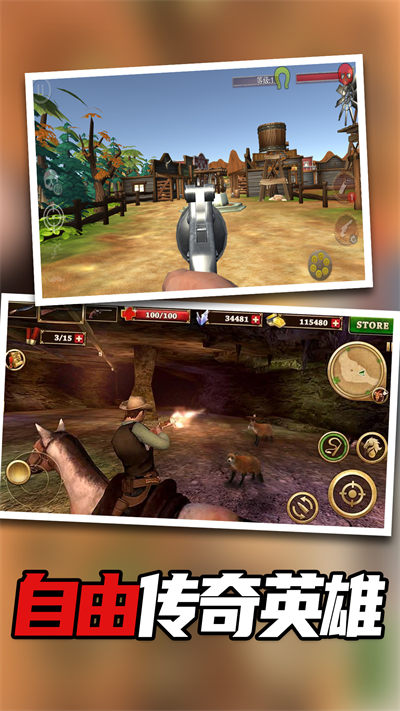 1、獨特的西部牛仔風情,游戲打造了一個非常有西部特色的荒野世界,這里有很多奇特的建筑,給玩家新鮮的視覺體驗;