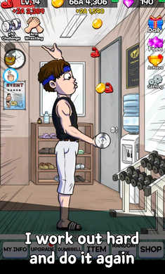 2、游戲中有很多的啞鈴,健身器材你都可以免費的進行使用,玩起來很有意思。