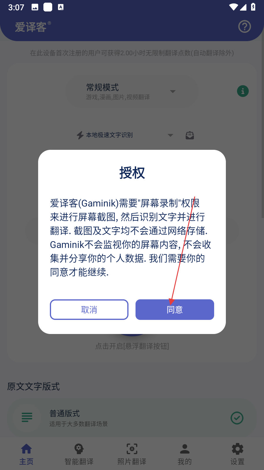 2、在授權(quán)提示框中,點擊同意按鈕。