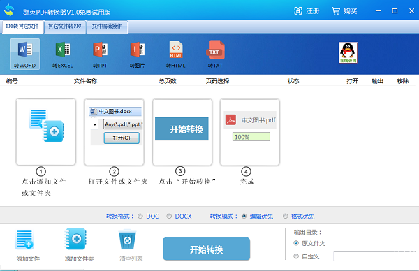 群英PDF轉(zhuǎn)換成WORD轉(zhuǎn)換器是一款操作簡單,轉(zhuǎn)換速度快的PDF轉(zhuǎn)換工具,專業(yè)而高效,界面簡單,軟件穩(wěn)定,不會(huì)出現(xiàn)錯(cuò)誤,或損壞文件,軟件支持批量轉(zhuǎn)換文件,并且可以互相轉(zhuǎn)換,功能十分強(qiáng)大,軟件可以獨(dú)立運(yùn)行,不需要依賴其他軟件。