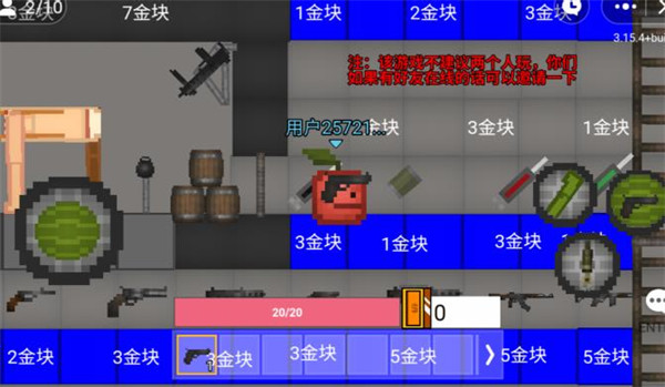 甜瓜VS蘋果手機版是一款聯(lián)機游戲,玩家可以和自己的好朋友聯(lián)網(wǎng)一起玩,游戲采用的是沙盒游戲的經(jīng)典玩法,玩家可以自由的利用游戲中的一些道具,建立自己的生存空間,一起輕松玩耍的同時,又能感受到熱血,快來加入吧!