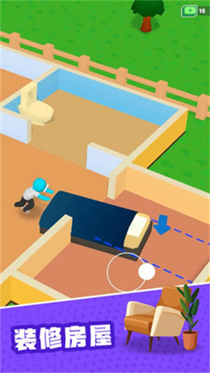 3、這是一個(gè)經(jīng)營(yíng)開發(fā)模擬極其真實(shí)的游戲,每天都有不同的獎(jiǎng)勵(lì),房間樣式可以隨心所欲的組合起來。