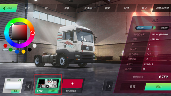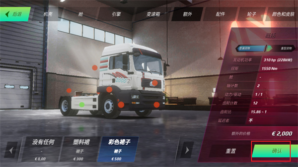7、一切都選擇好之后,玩家將可以點擊屏幕右下角的【確認】按鈕來進行卡車外觀的確認。
