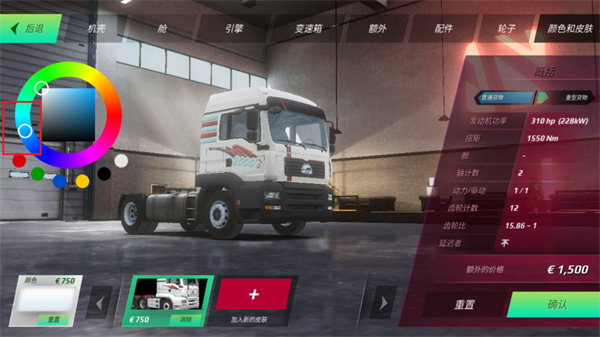 2、此時玩家將需要點擊下方的卡車,將會彈出一個調色盤;