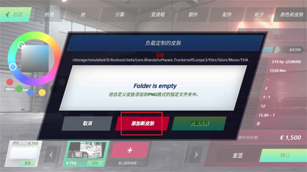 4、也可以點擊屏幕下方的紅色加號小按鈕,以進行其他卡車皮膚的導入;