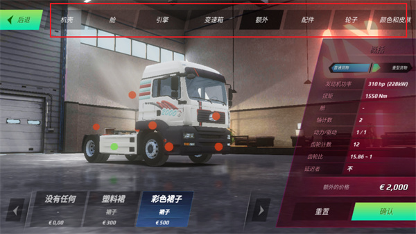 6、還可以通過上方的各種不同部件欄來進行卡車其他部件的更換;
